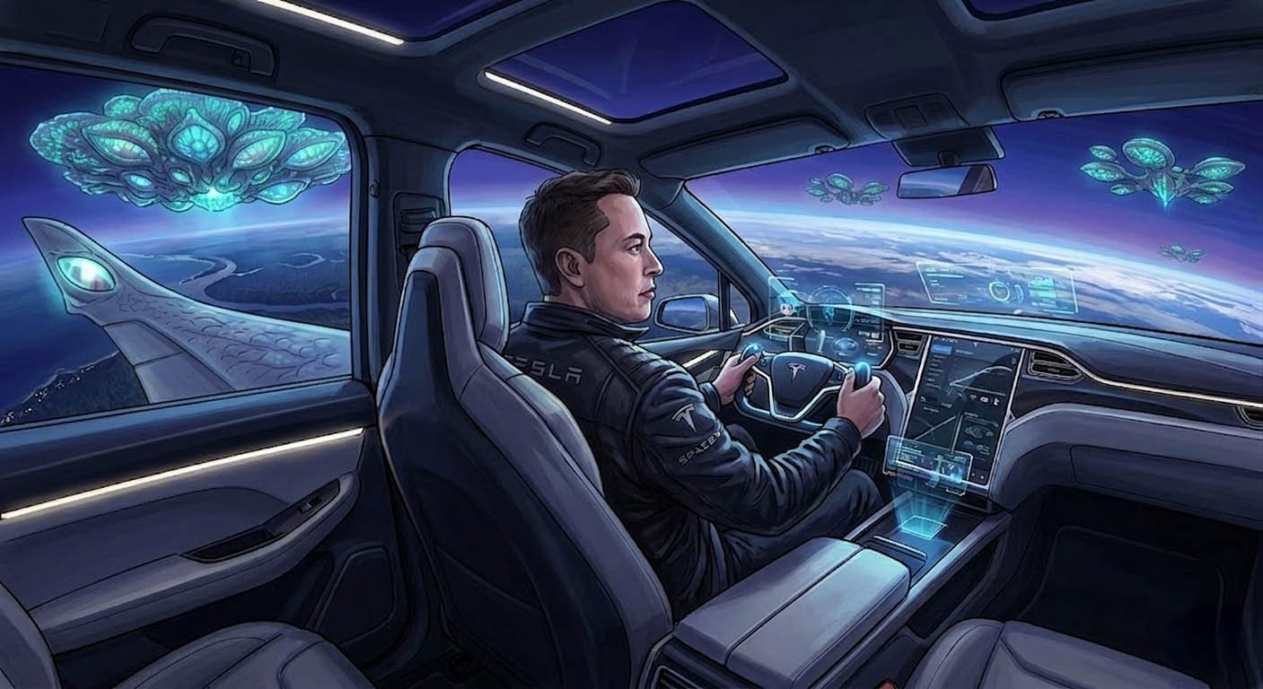 During the journey, I was clearly irritating Elon with some of my musings and assertions. Later on in the conversation it became more playful, as I am not generally attached to making people see things from my perspective and he didn't appear to be either. Upon this occurring, alien light ships appeared around us in the sky.